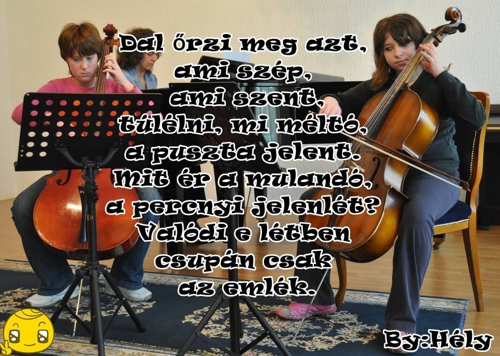 Dal őrzi meg azt, ami szép, ami szent, túlélni, mi méltó, a puszta jelent. Mit ér a mulandó, a percnyi jelenlét? Valódi e létben csupán csak az emlék.
